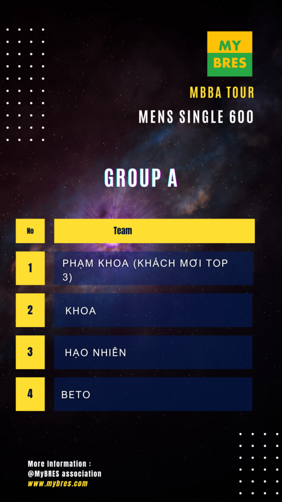 • MYBRES ASSOCIATION | Bốc thăm giải đấu MBBA WD 600 8/12